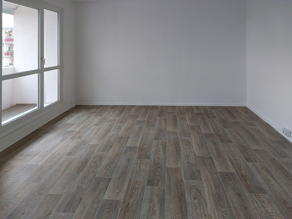 - PVC- Bodenbelag und Raufasertapete in den Wohnräumen