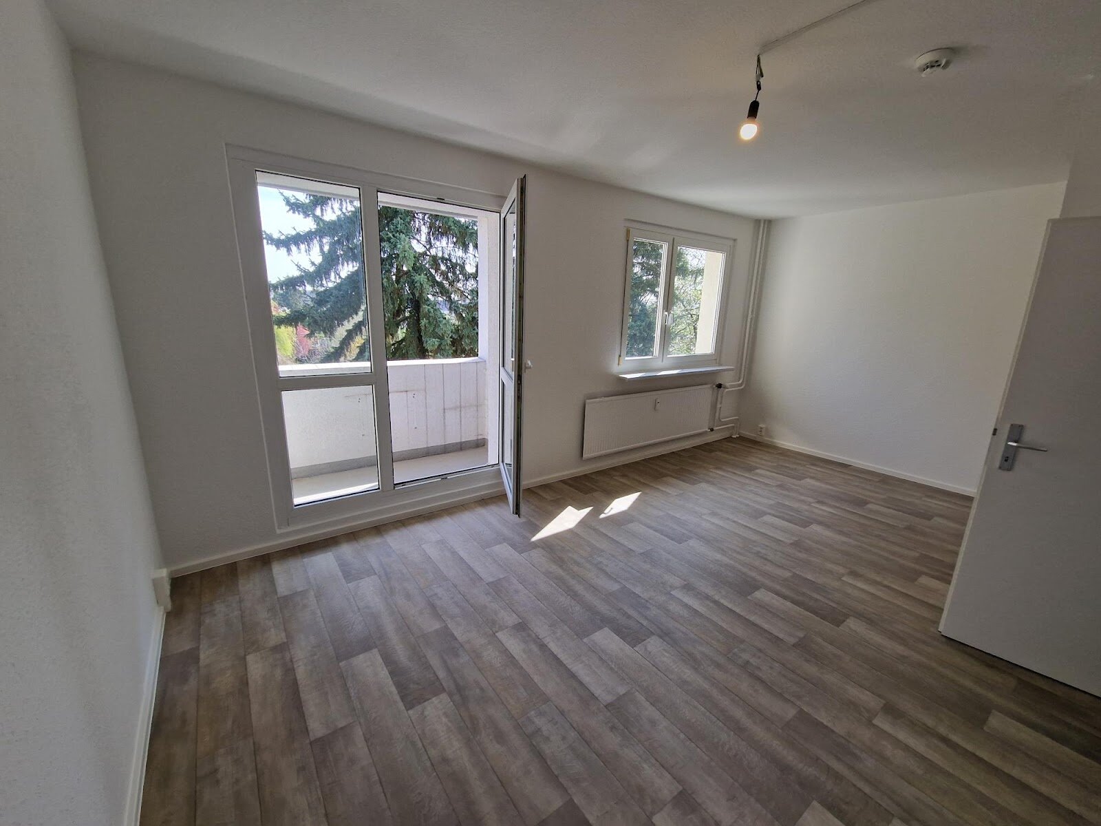 - PVC- Bodenbelag und Raufasertapete in den Wohnräumen