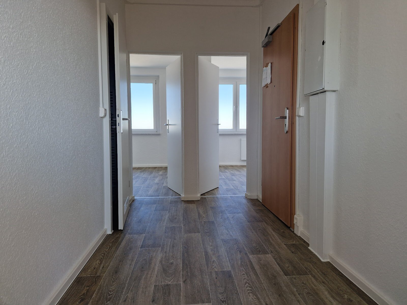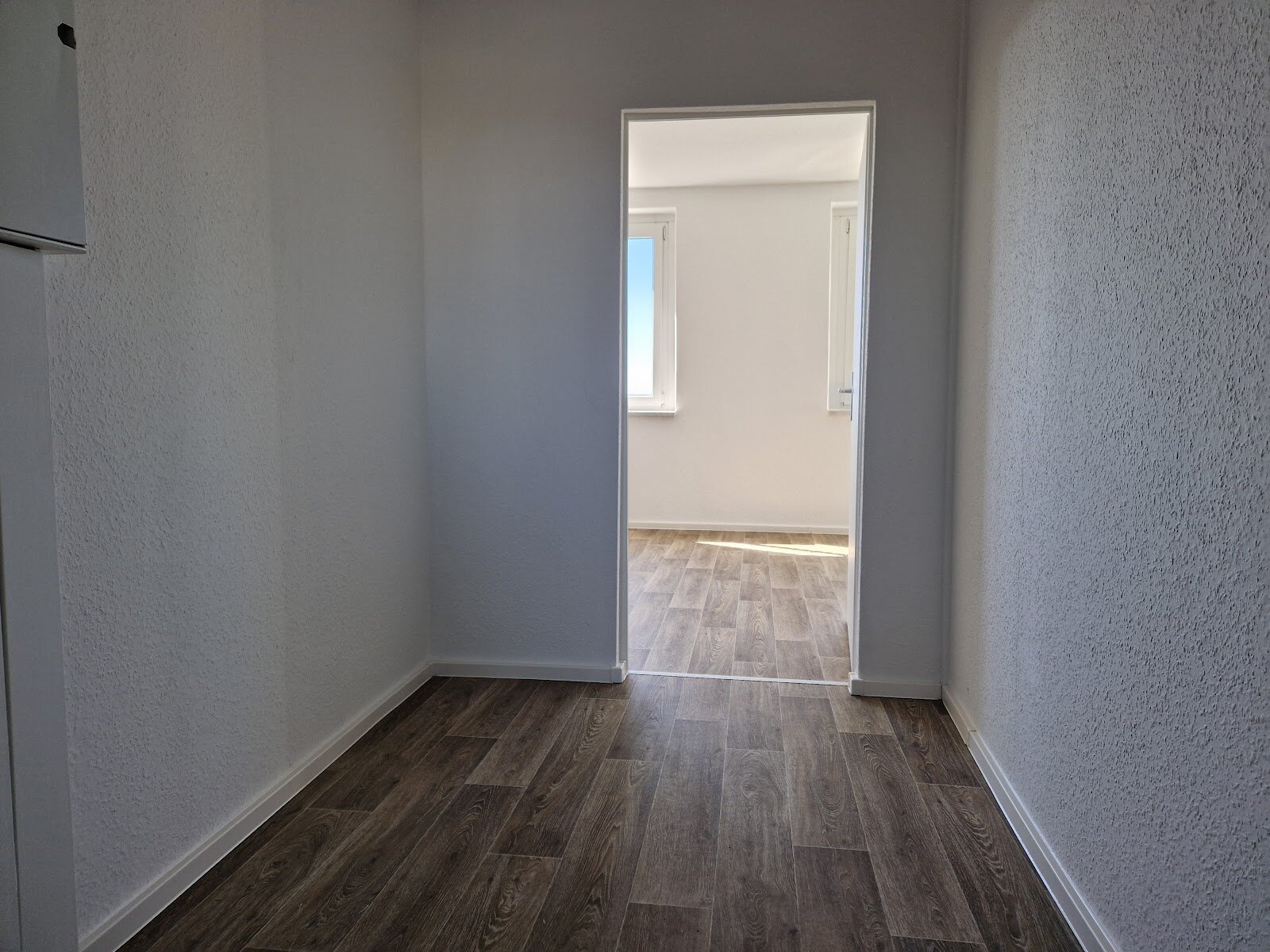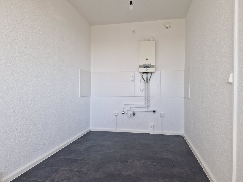 - PVC- Bodenbelag und Raufasertapete in den Wohnräumen