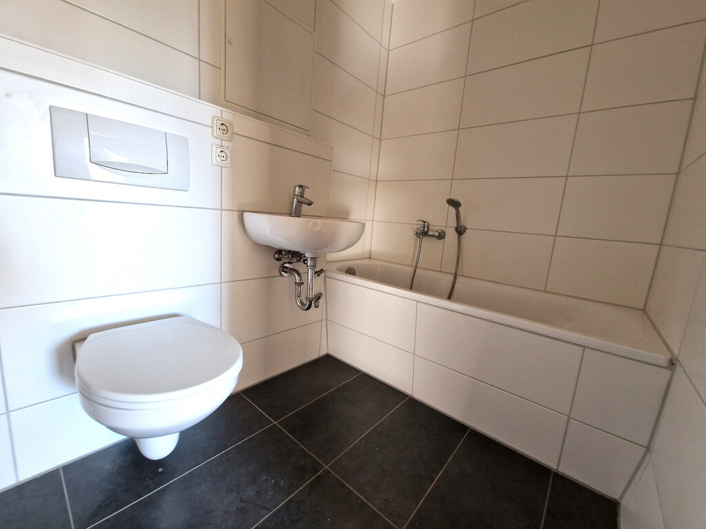 - Badezimmer mit Badewanne und Waschmaschinenanschluss