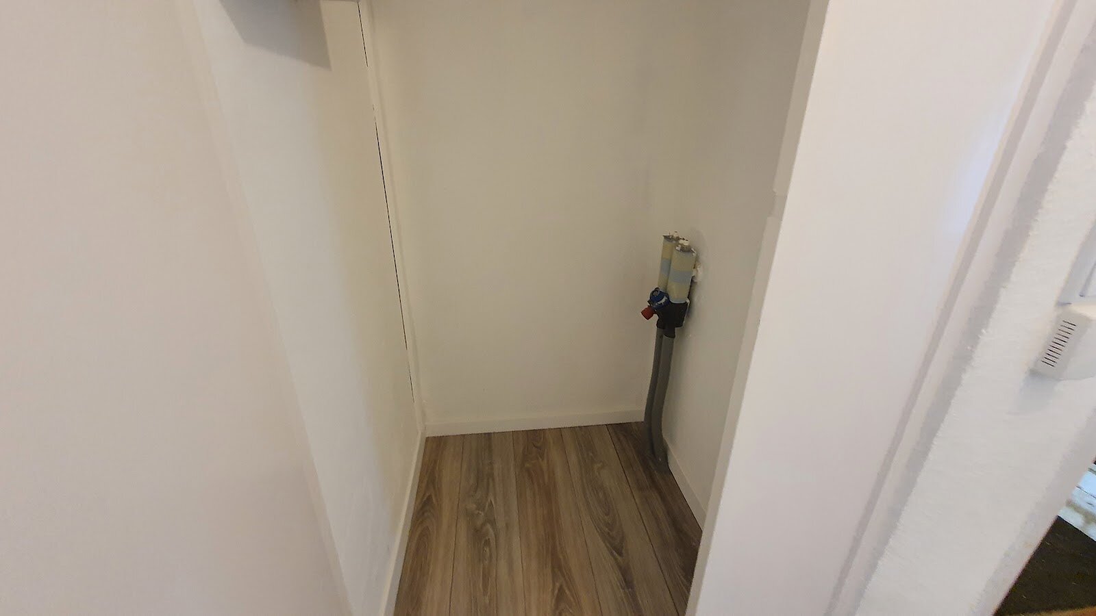 - Laminat- Bodenbelag und Raufasertapete in den Wohnräumen
