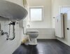 - Anthrazite Boden- und weiße Wandfliesen im Bad