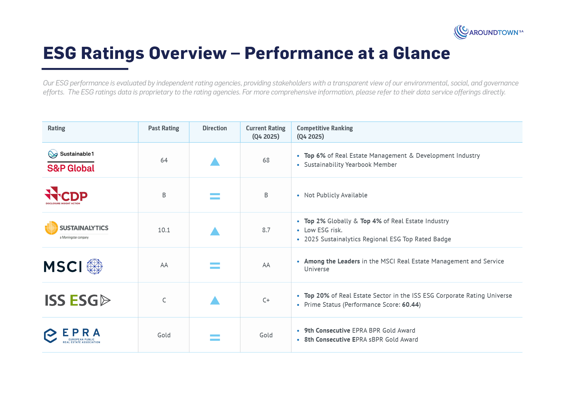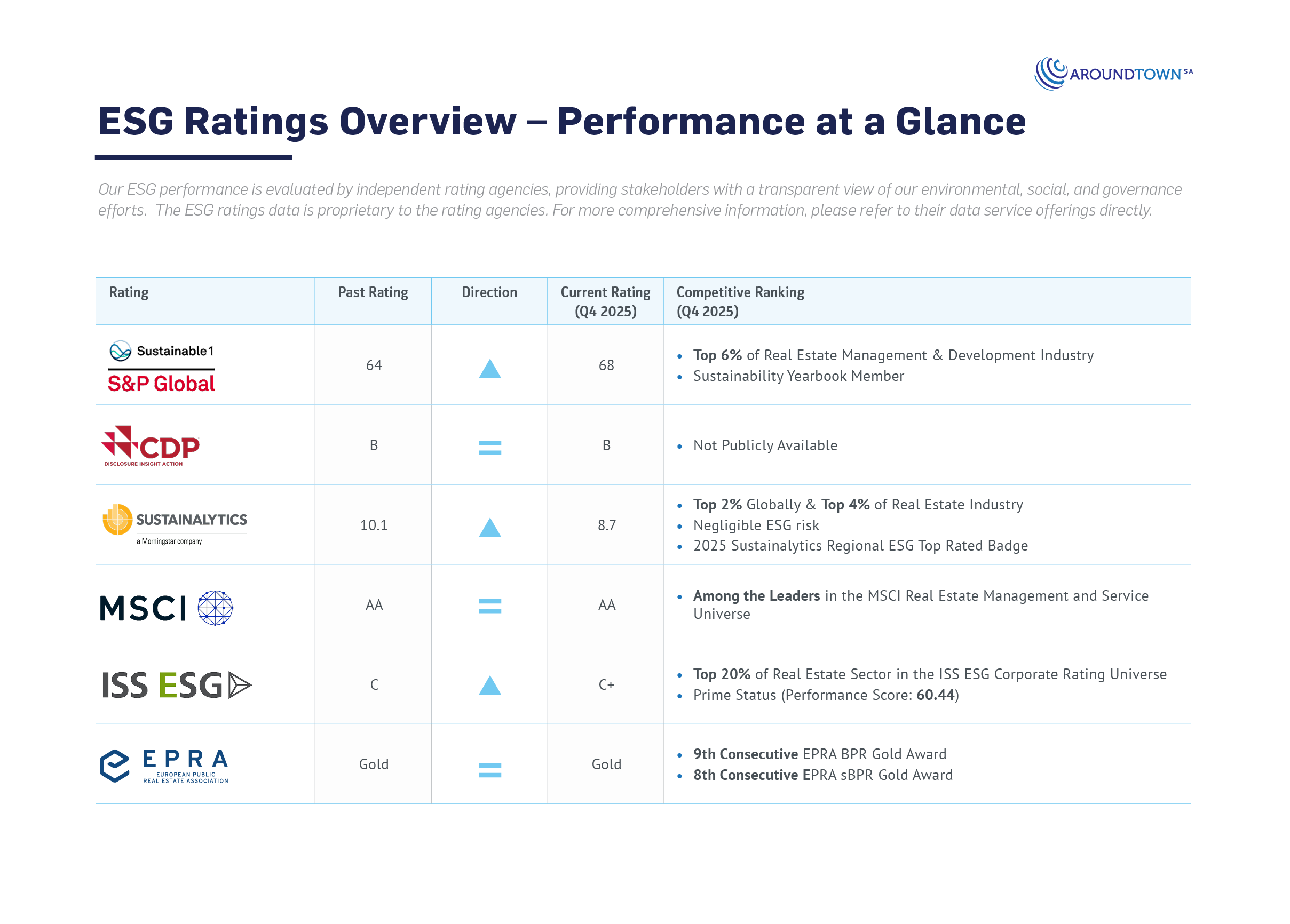 Our ESG performance is evaluated by independent rating agencies, providing stakeholders with a transparent view of our environmental, social, and governance efforts. For more information, please consult with the respective rating agencies.