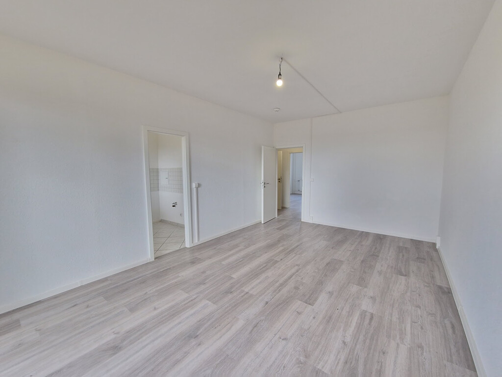 - Laminat- Bodenbelag und Raufasertapete in den Wohnräumen