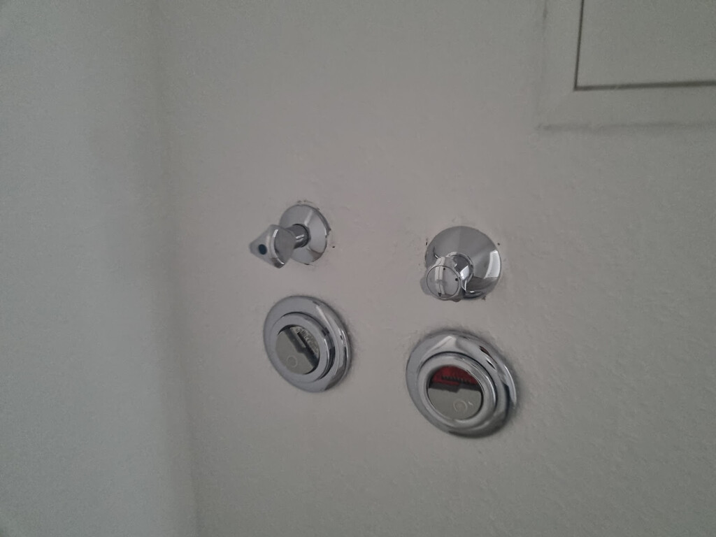 - Anthrazite Boden- und weiße Wandfliesen im Bad
