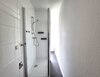 - Anthrazite Boden- und weiße Wandfliesen im Bad