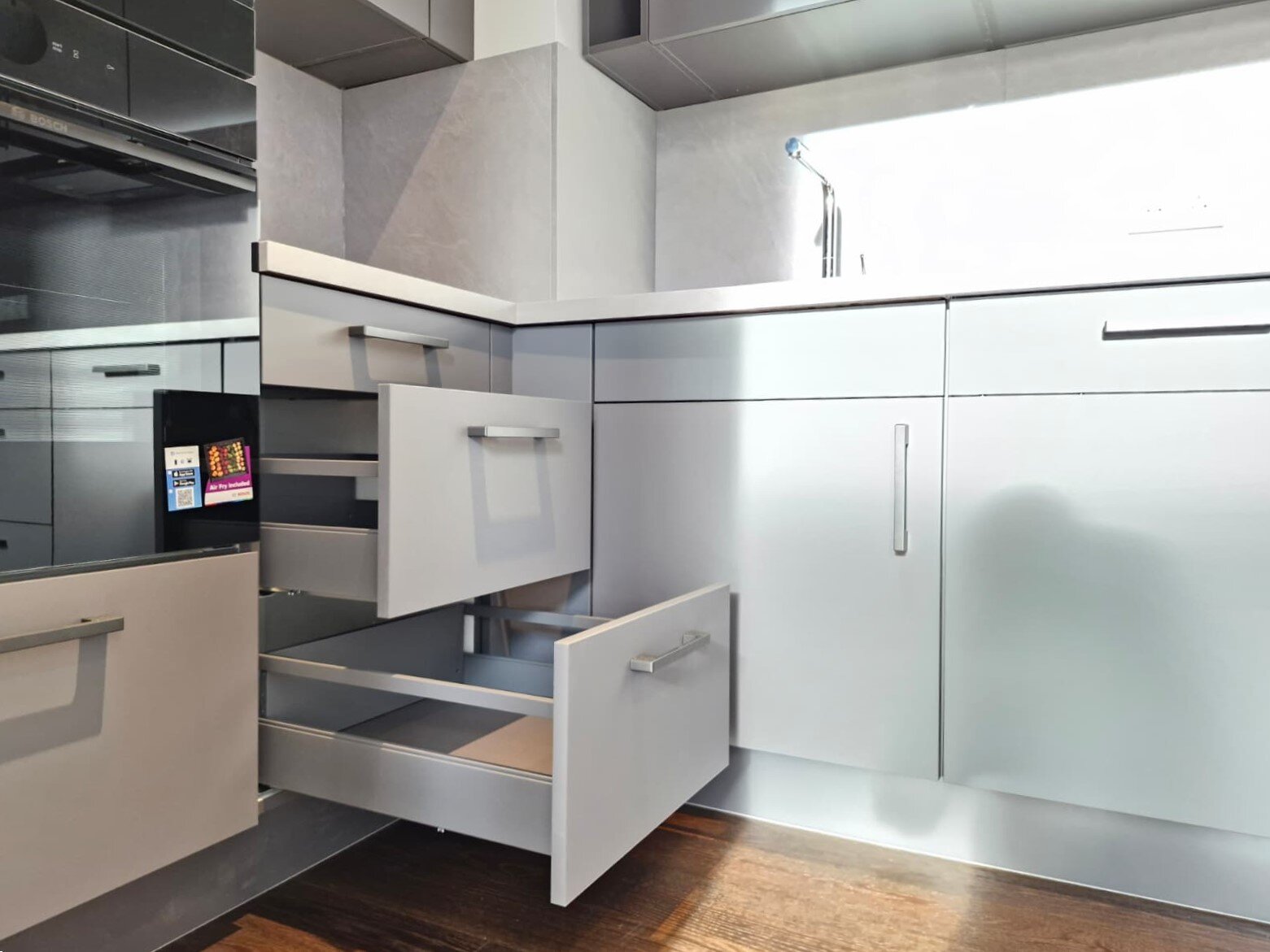 Jede Wohnung ist mit mindestens zwei voll ausgestatteten Bädern versehen – jeweils mit Badewanne und bodengleicher Dusche. Jede Wohnung ist mit einer hochwertigen Einbauküche ausgestattet.