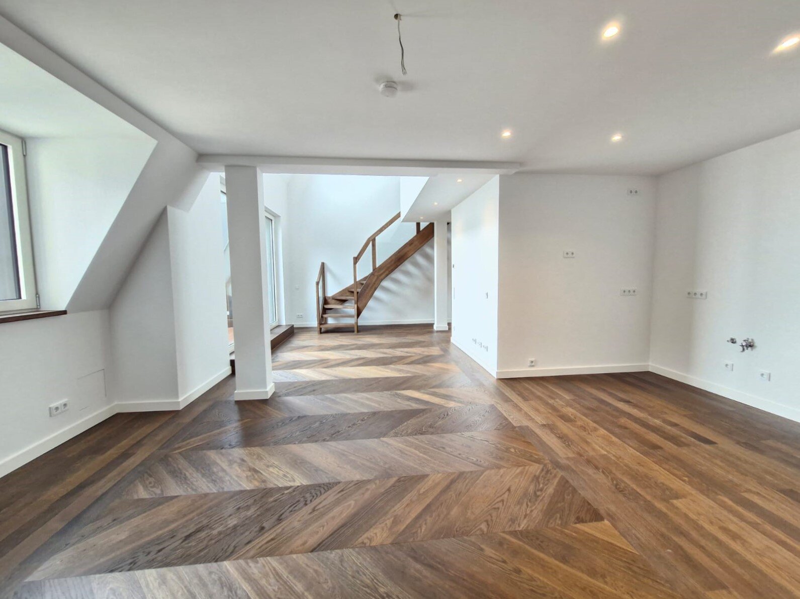 Die bezugsfertigen Wohnungen verteilen sich jeweils über zwei Ebenen und bieten großzügige Grundrisse, viel Tageslicht und ein erstklassiges Wohnambiente. Einige Einheiten verfügen über private Dachterrassen mit beeindruckendem Panoramablick über Berlin, andere über großzügige Balkone, die zur ruhigen Hofseite ausgerichtet sind.