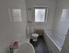 - Anthrazite Boden- und weiße Wandfliesen im Bad