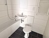 - Anthrazite Boden- und weiße Wandfliesen im Bad