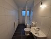 - Anthrazite Boden- und weiße Wandfliesen im Bad
