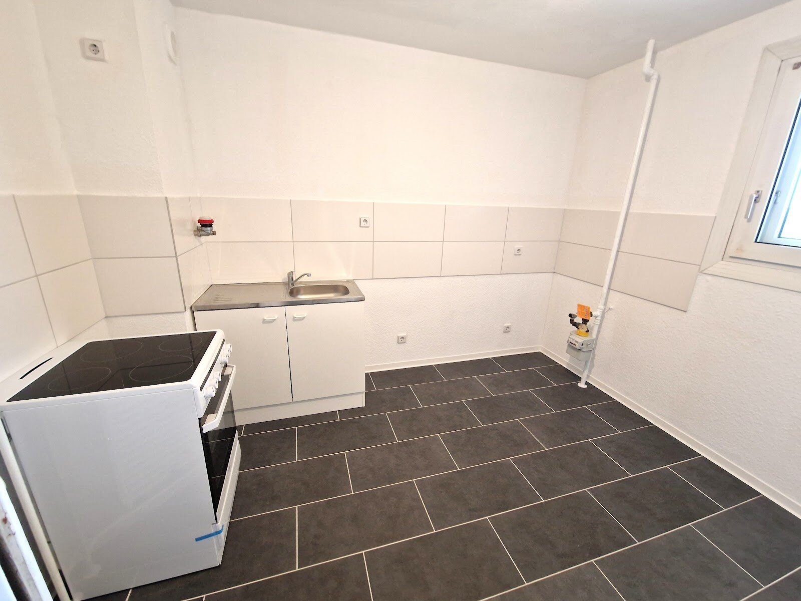 - PVC- Bodenbelag und Raufasertapete in den Wohnräumen