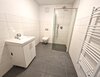 - Anthrazite Boden- und weiße Wandfliesen im Bad