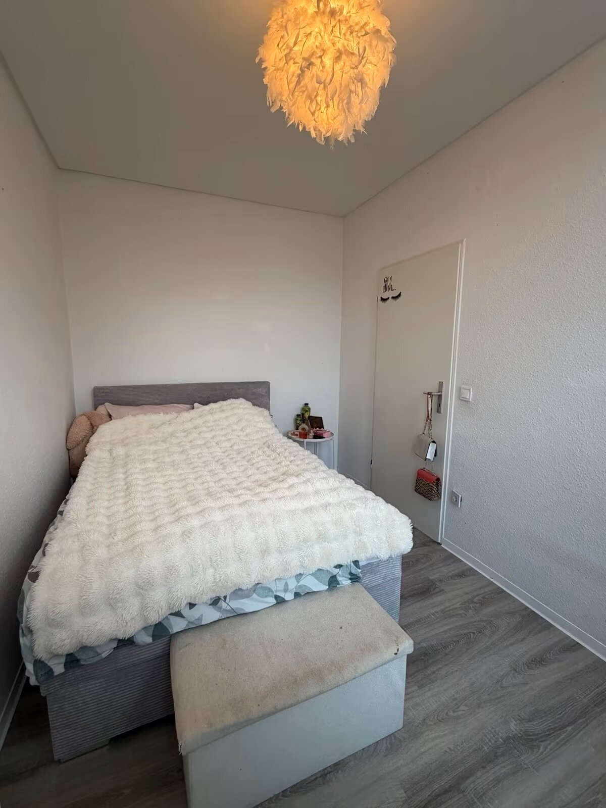 - Laminat- Bodenbelag und Raufasertapete in den Wohnräumen