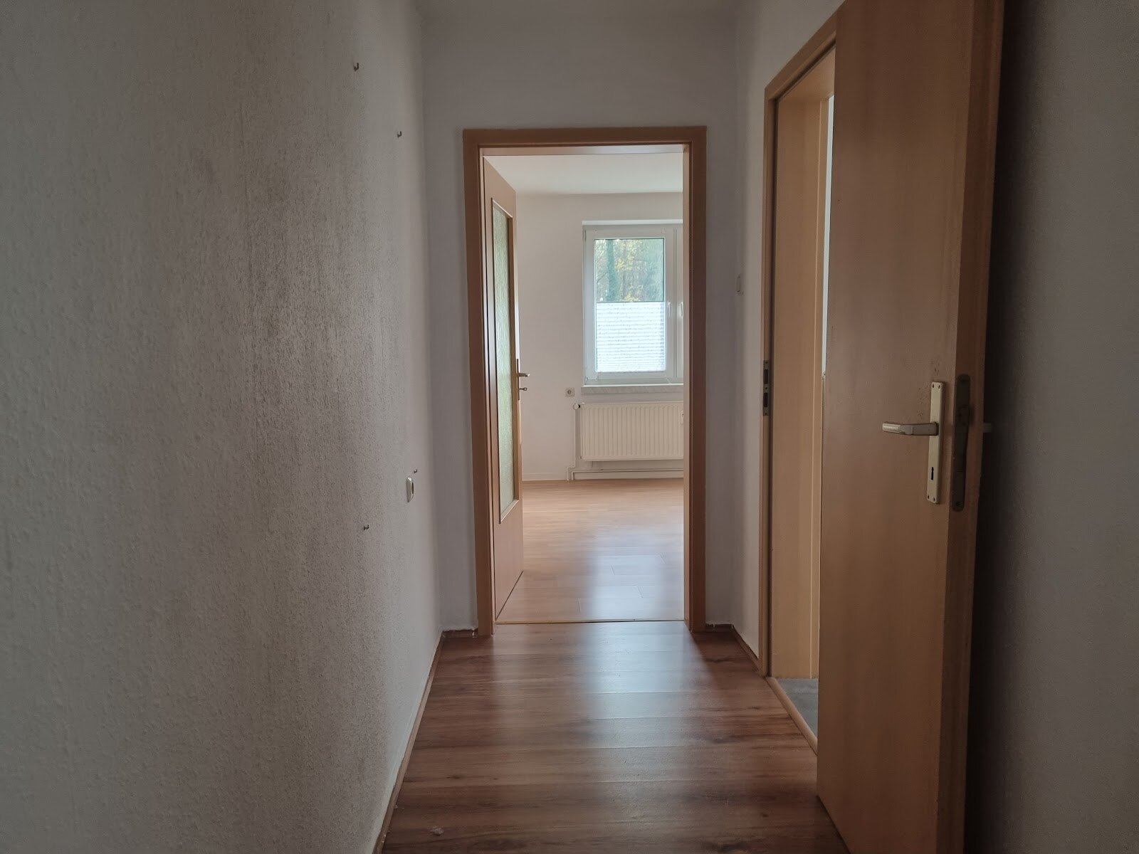 - Laminat - Bodenbelag und Raufasertapete in den Wohnräumen