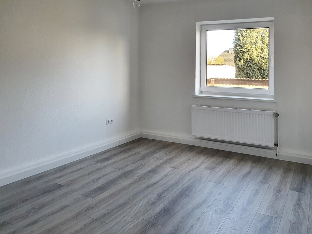 - Laminat/PVC- Bodenbelag und Raufasertapete in den Wohnräumen