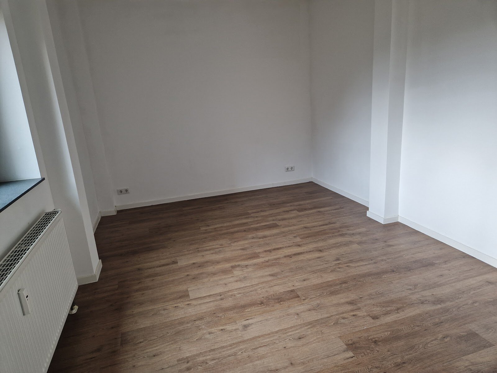 - Laminat- Bodenbelag und Raufasertapete in den Wohnräumen