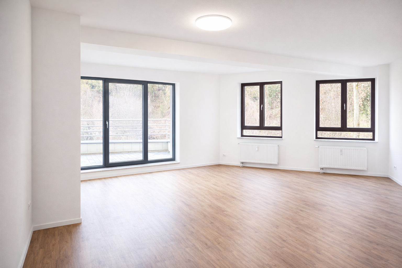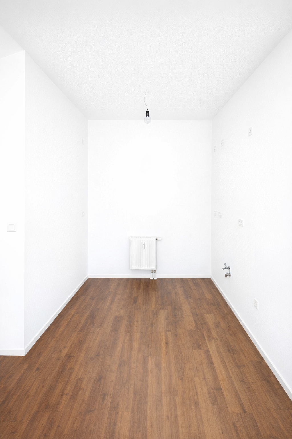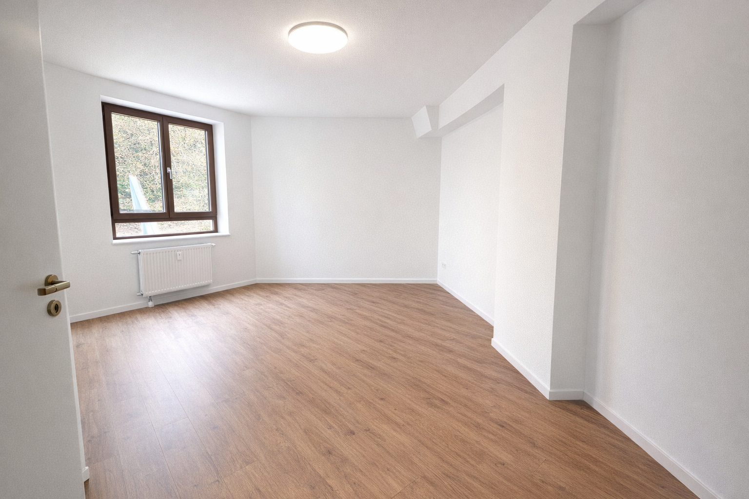 -Laminatboden und Raufasertapete in den Wohnräumen