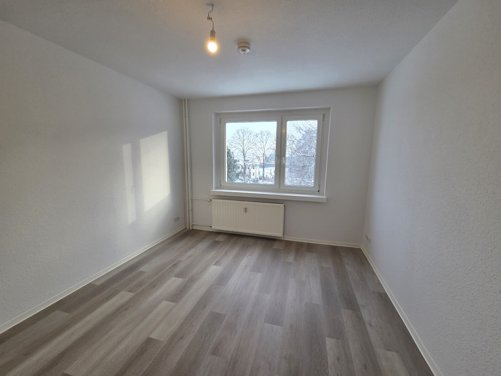 - Laminat- Bodenbelag und Raufasertapete in den Wohnräumen