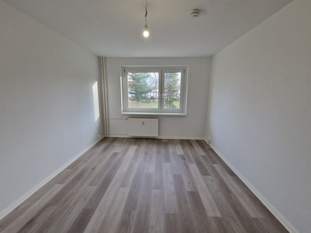 - Laminat- Bodenbelag und Raufasertapete in den Wohnräumen