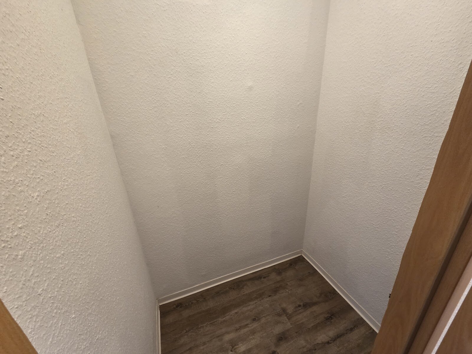 - Laminat- Bodenbelag und Raufasertapete in den Wohnräumen
