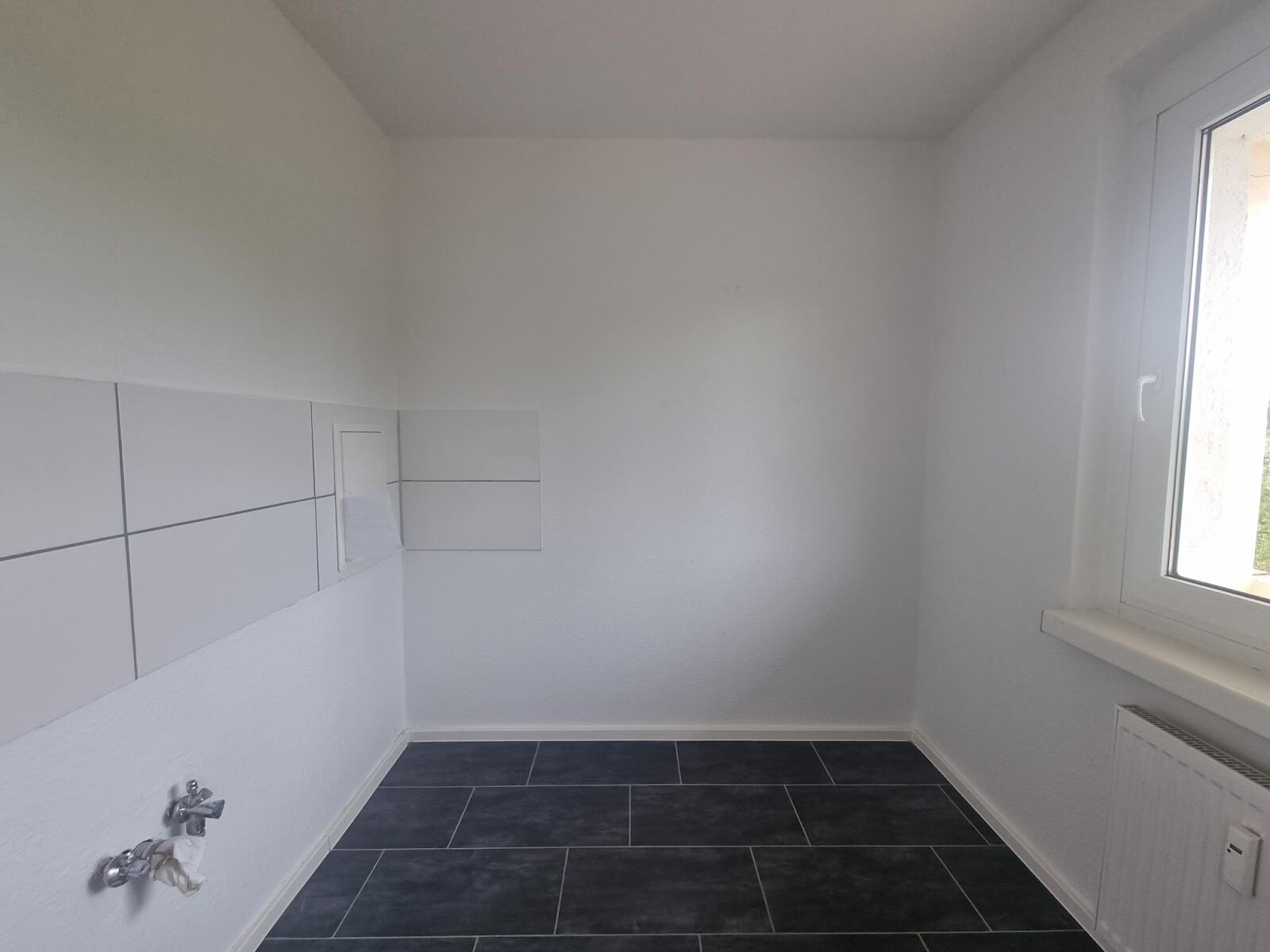- PVC- Bodenbelag und Raufasertapete in den Wohnräumen