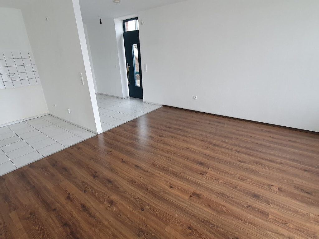 - Laminat- Bodenbelag und Raufasertapete in den Wohnräumen