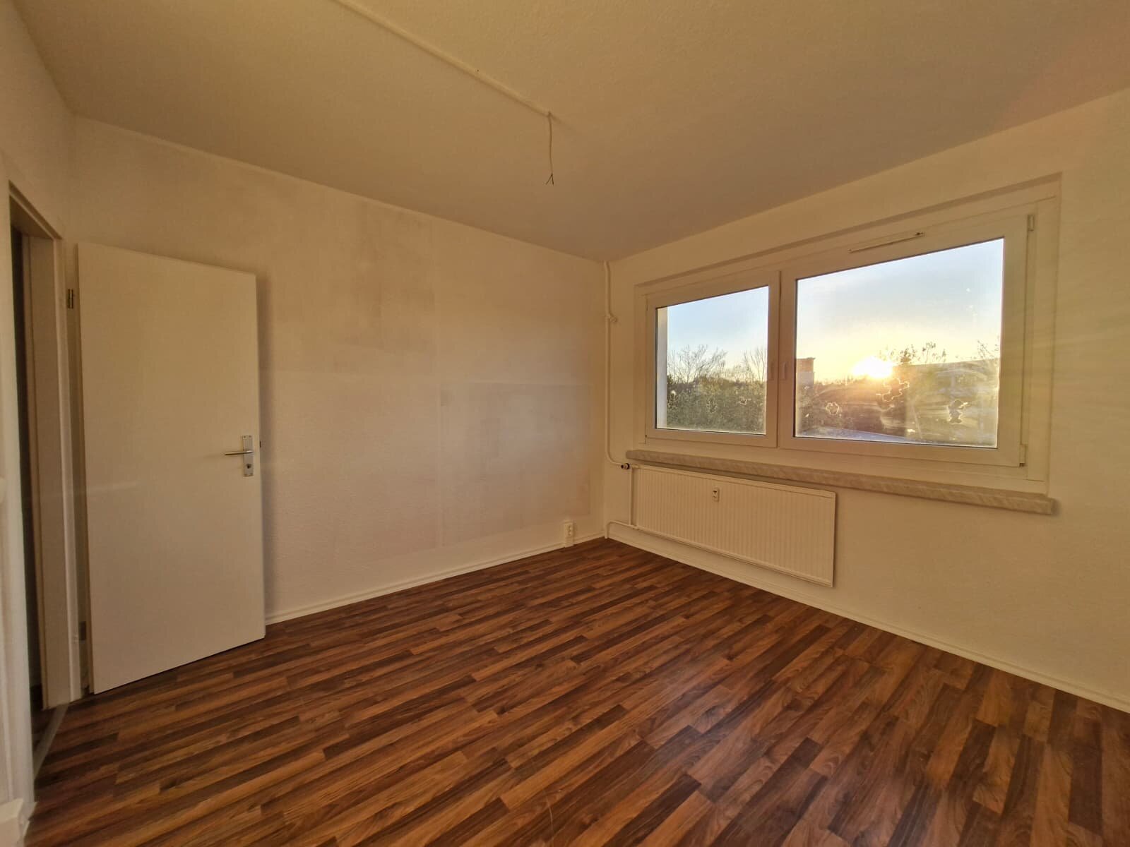 - Laminat- Bodenbelag und Raufasertapete in den Wohnräumen
