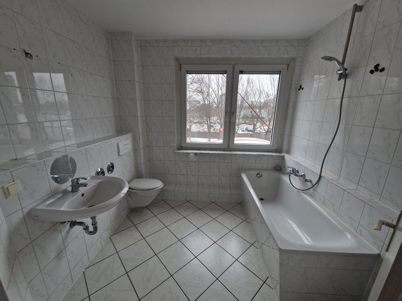 - Tageslichtbad mit Badewanne und WM-Anschluss