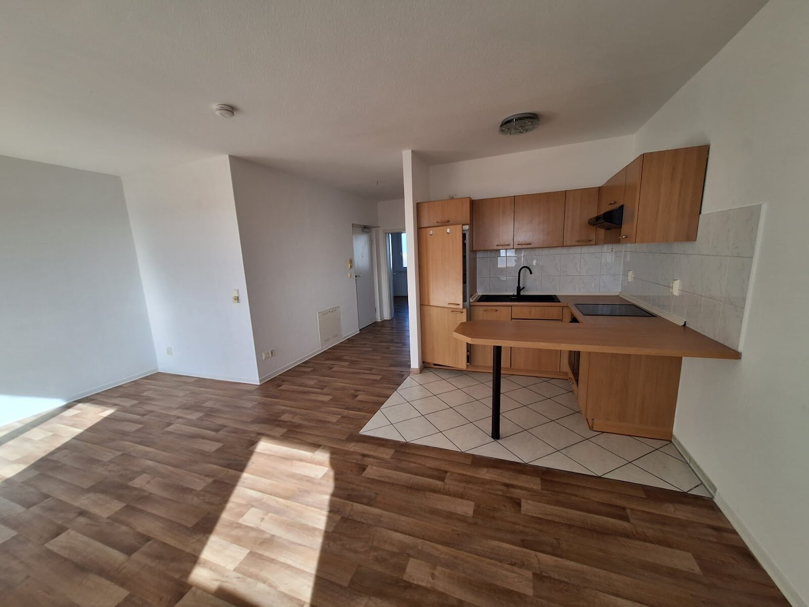 - PVC- Bodenbelag und Raufasertapete in den Wohnräumen