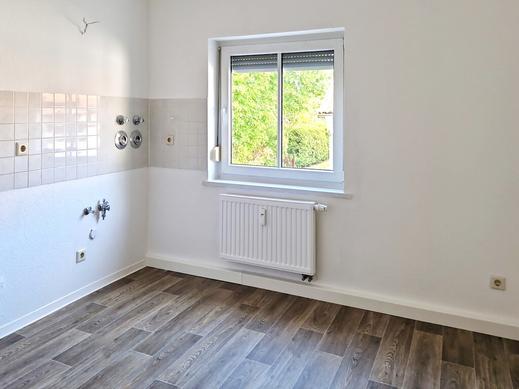 - PVC- Bodenbelag und Raufasertapete in den Wohnräumen