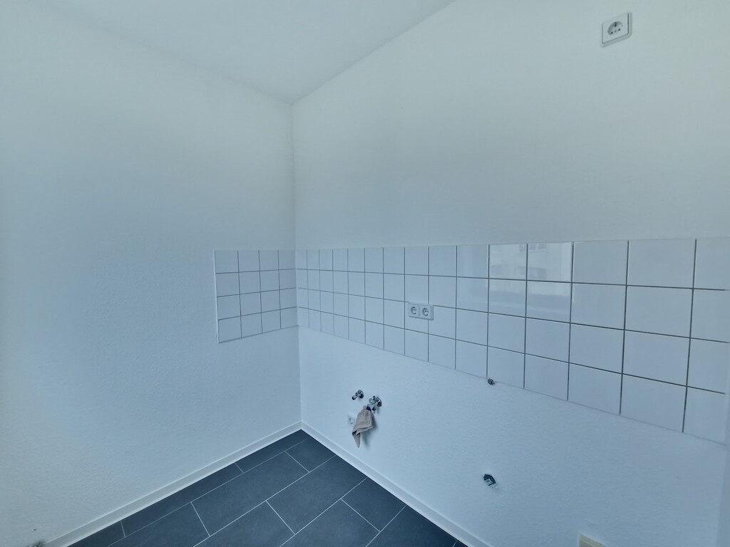 • Wohnbereich mit pflegeleichtem PVC-Bodenbelag und Raufasertapete – neutral gehalten und bereit für Ihre Einrichtungsideen