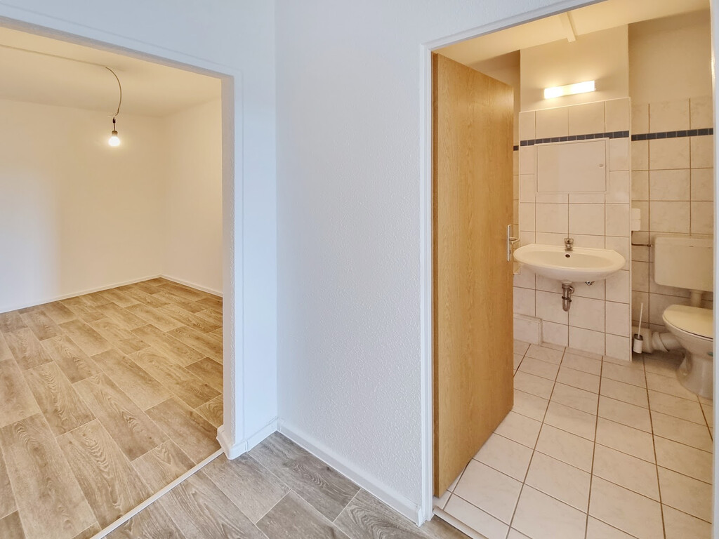 - Laminat- Bodenbelag und Raufasertapete in den Wohnräumen