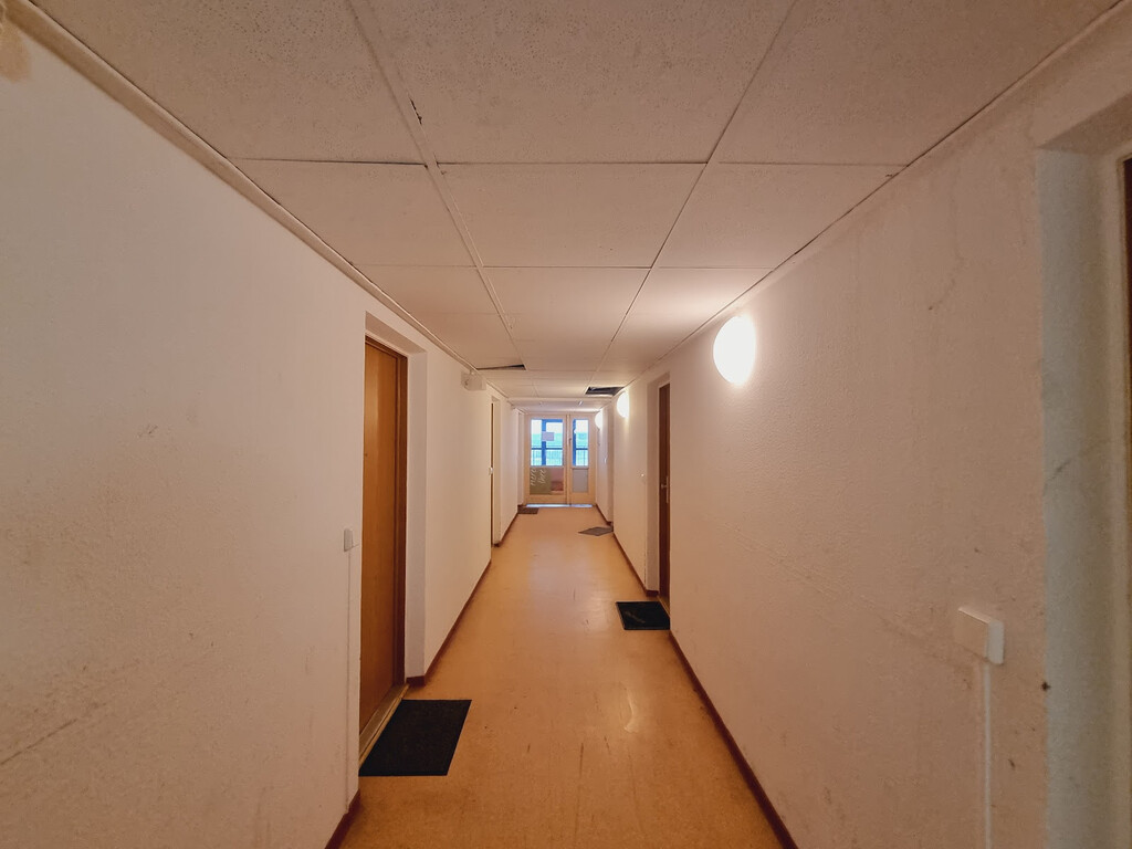 - PVC- Bodenbelag und Raufasertapete in den Wohnräumen