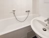 - Anthrazite Boden- und weiße Wandfliesen im Bad