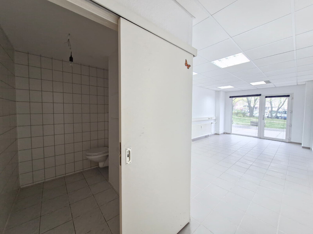 Straßenseitig sorgen zwei große Schaufenster für eine helle und freundliche Ausleuchtung der Fläche und bieten zugleich gute Präsentationsmöglichkeiten.