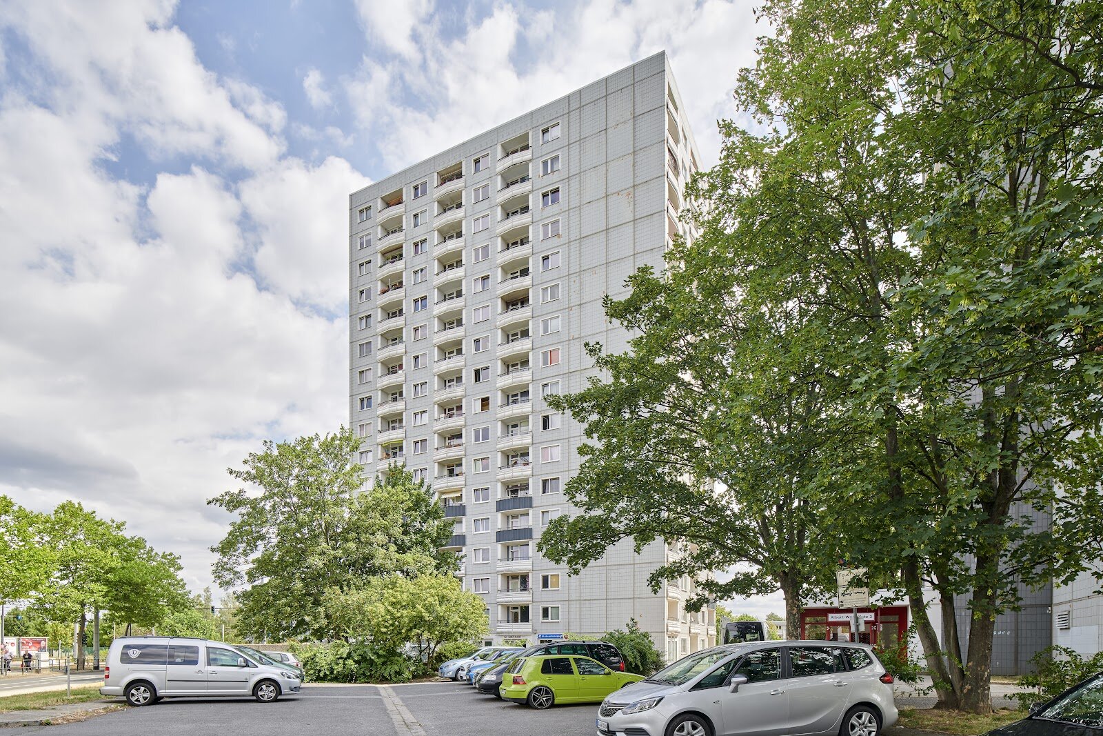 In unserer Wohnanlage am Albert-Wolf-Platz 2 im Dresdner Stadtteil Prohlis steht im Erdgeschoss eines 16-geschossigen Wohnhauses eine Gewerbeeinheit zur Vermietung. Das Gebäude wurde 1978 erbaut.