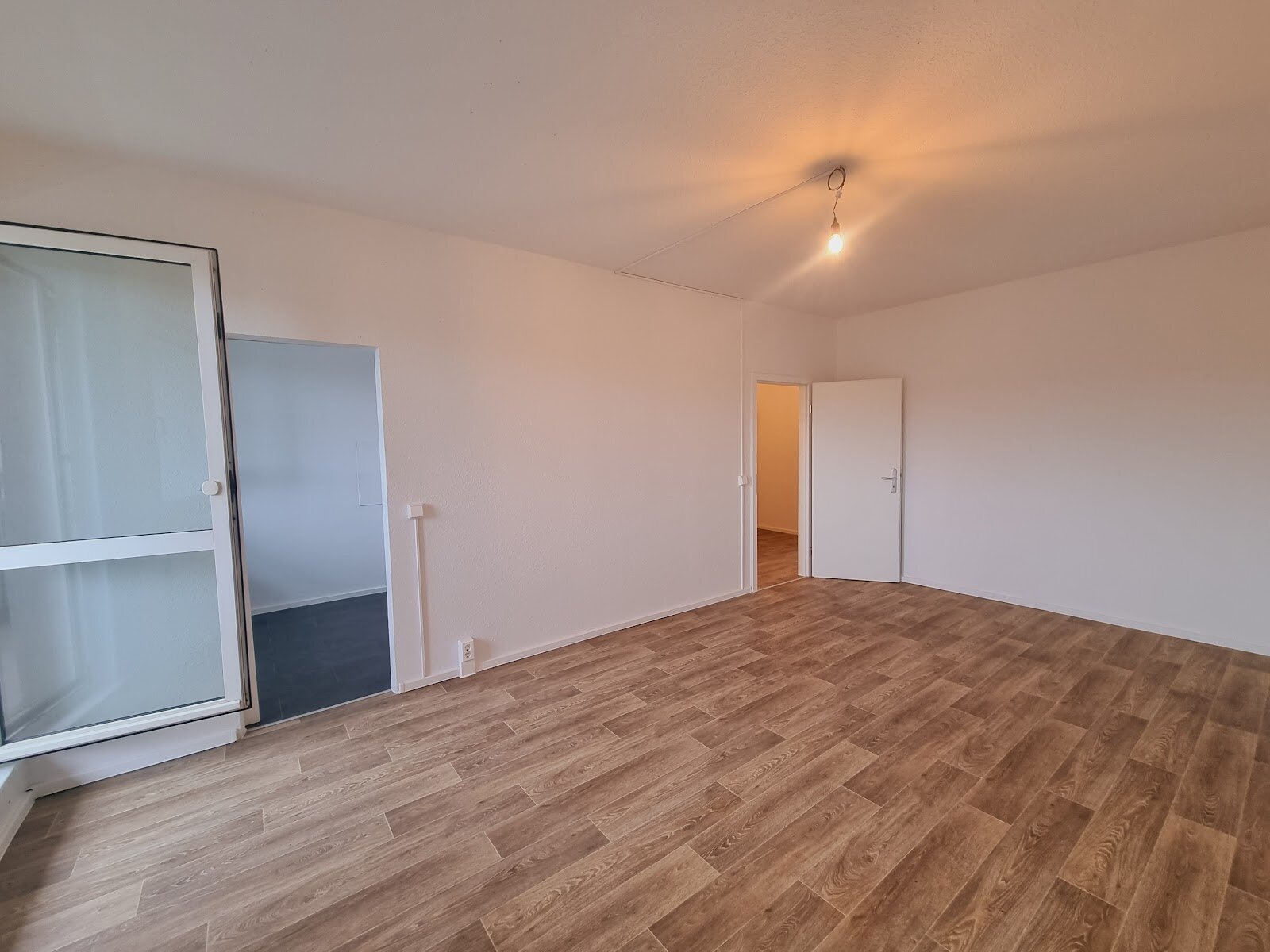 - PVC- Bodenbelag und Raufasertapete in den Wohnräumen