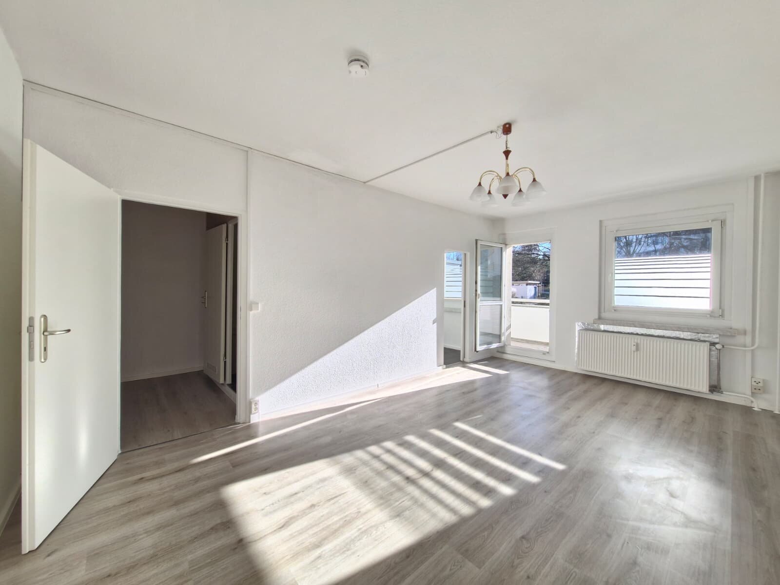 - Laminat- Bodenbelag und Raufasertapete in den Wohnräumen