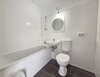 - Anthrazite Boden- und weiße Wandfliesen im Bad