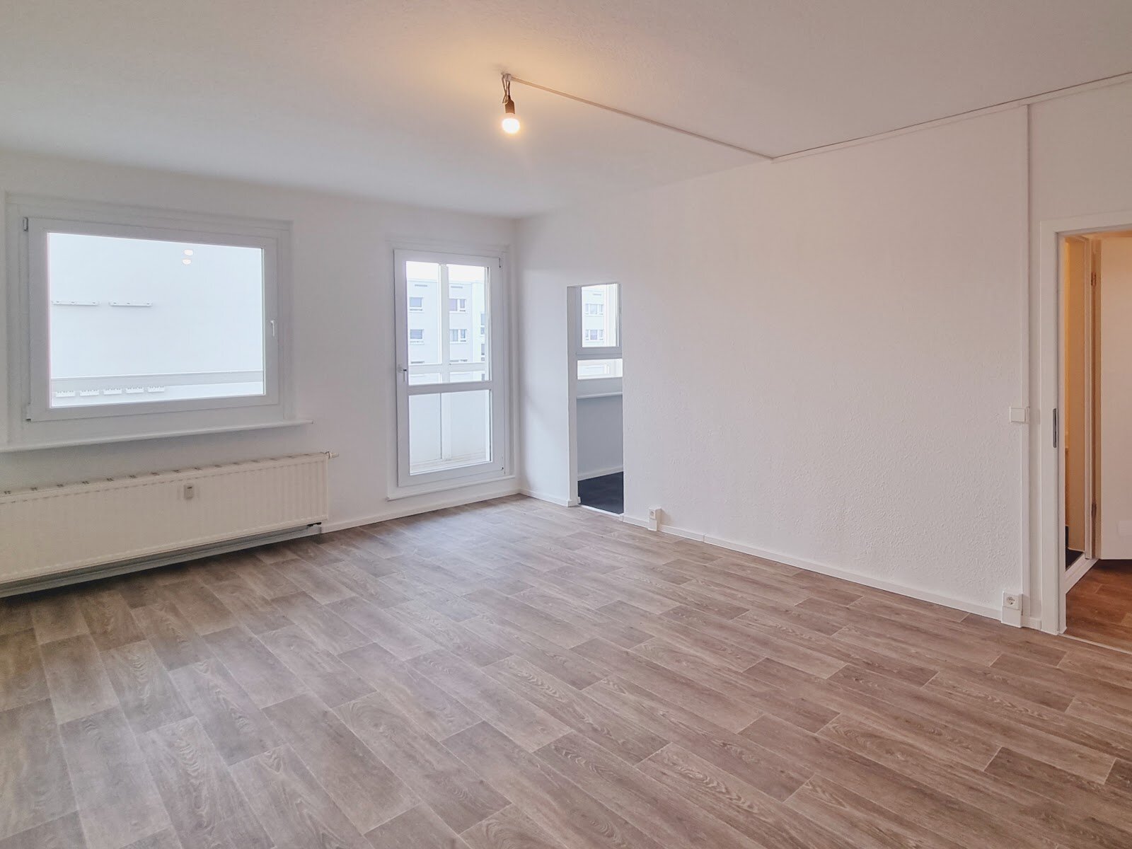 - PVC- Bodenbelag und Raufasertapete in den Wohnräumen