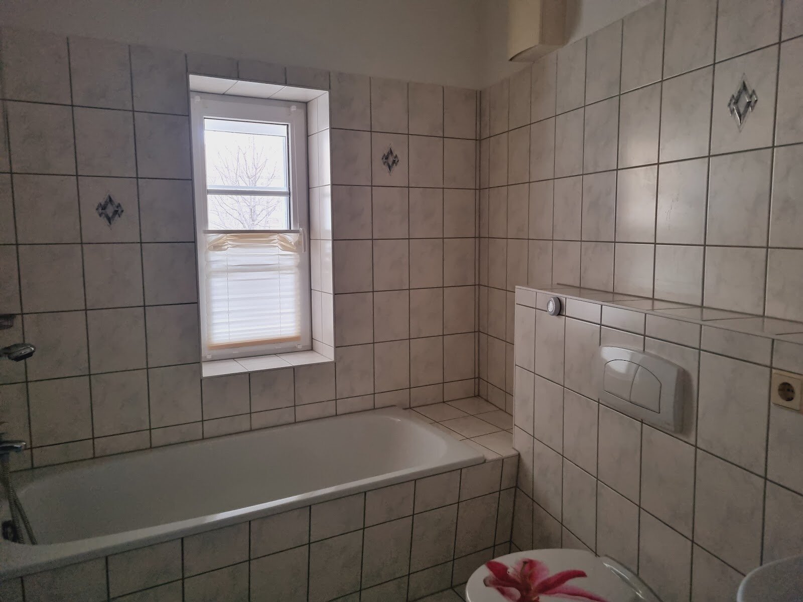 - Tageslichtbad mit Badewanne und Fenster zur Loggia hin