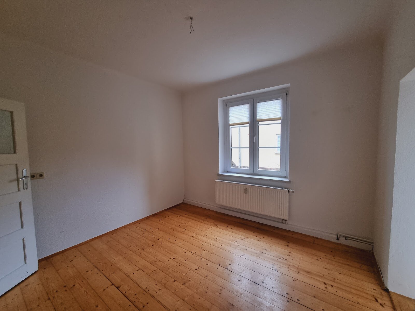 - Holzfußbodenbelag und Raufasertapete in den Wohnräumen