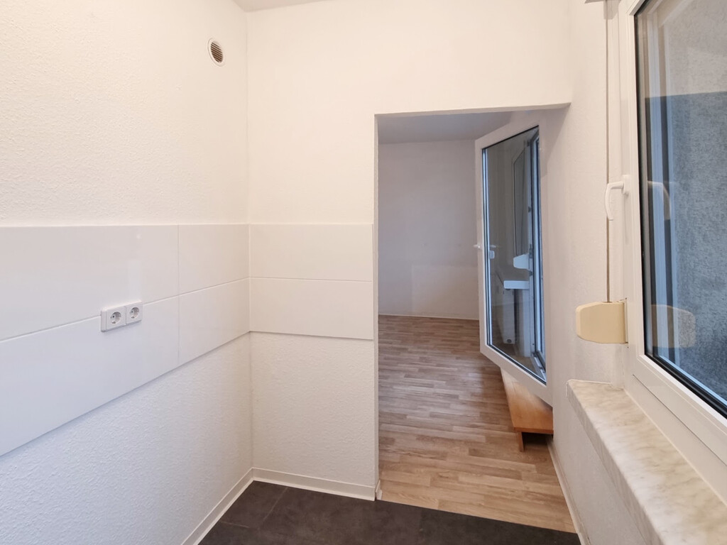 - PVC- Bodenbelag und Raufasertapete in den Wohnräumen