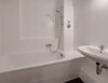 - Anthrazite Boden- und weiße Wandfliesen im Bad