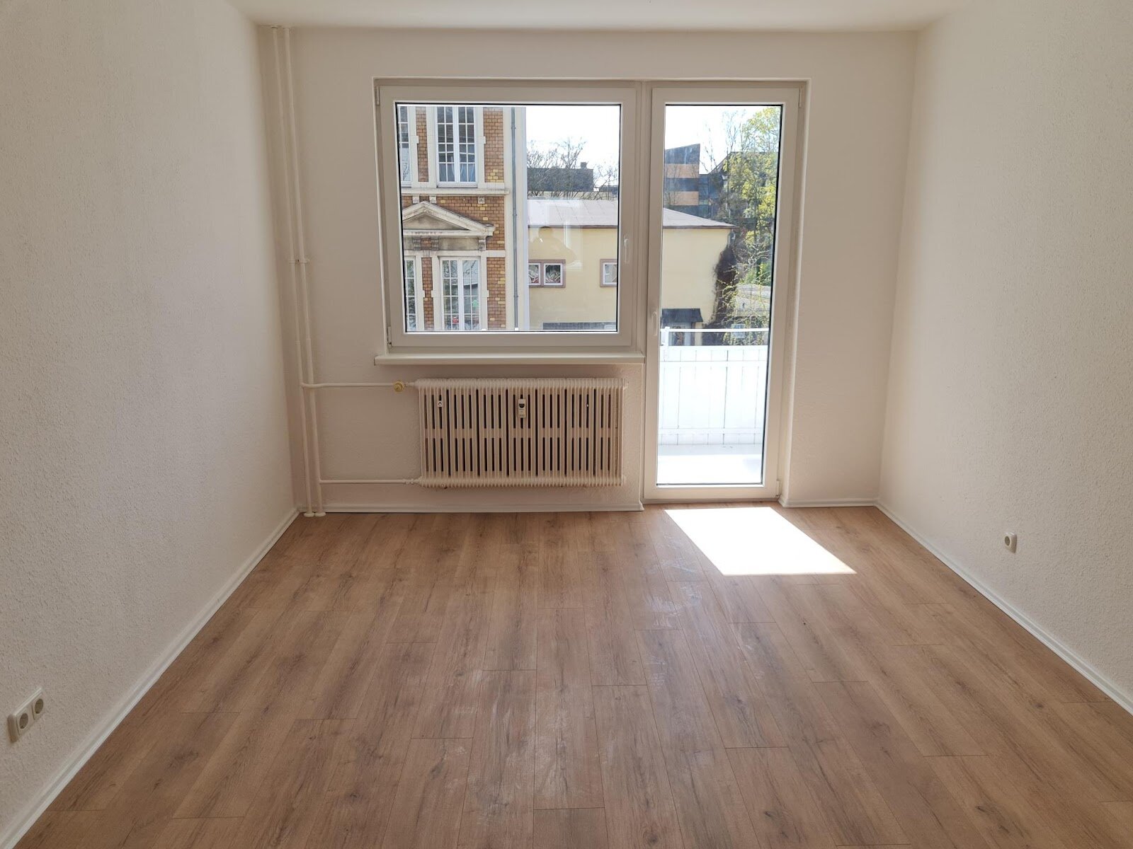 - Laminat/PVC- Bodenbelag und Raufasertapete in den Wohnräumen