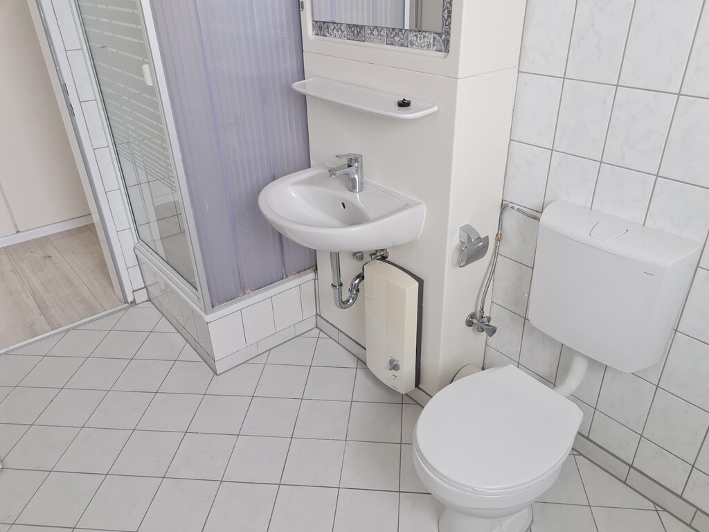 - Laminat/PVC- Bodenbelag und Raufasertapete in den Wohnräumen
