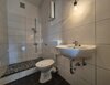 - Anthrazite Boden- und weiße Wandfliesen im Bad