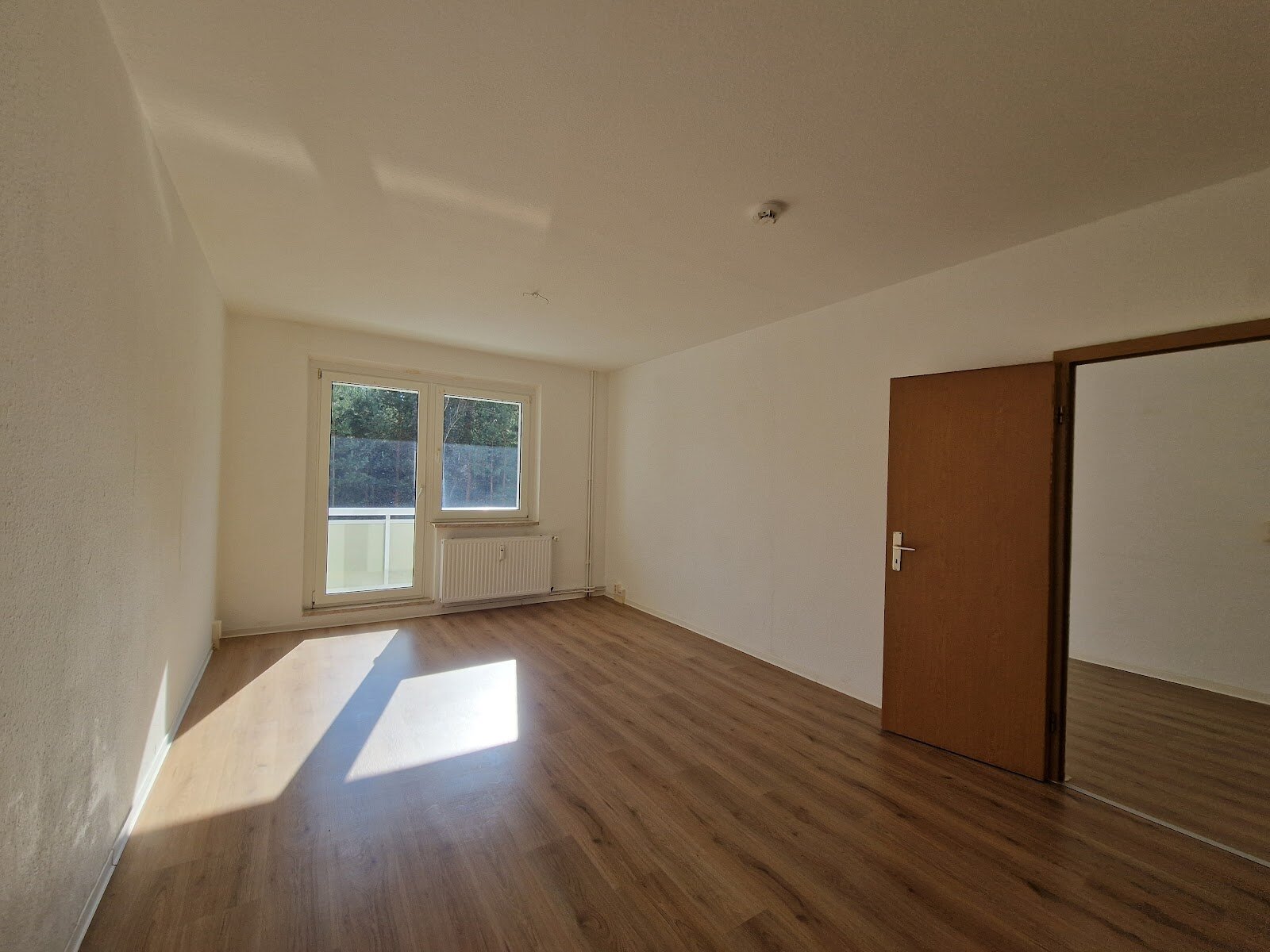 - Laminat-Bodenbelag und Raufasertapete in den Wohnräumen