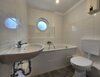 - Anthrazite Boden- und weiße Wandfliesen im Bad